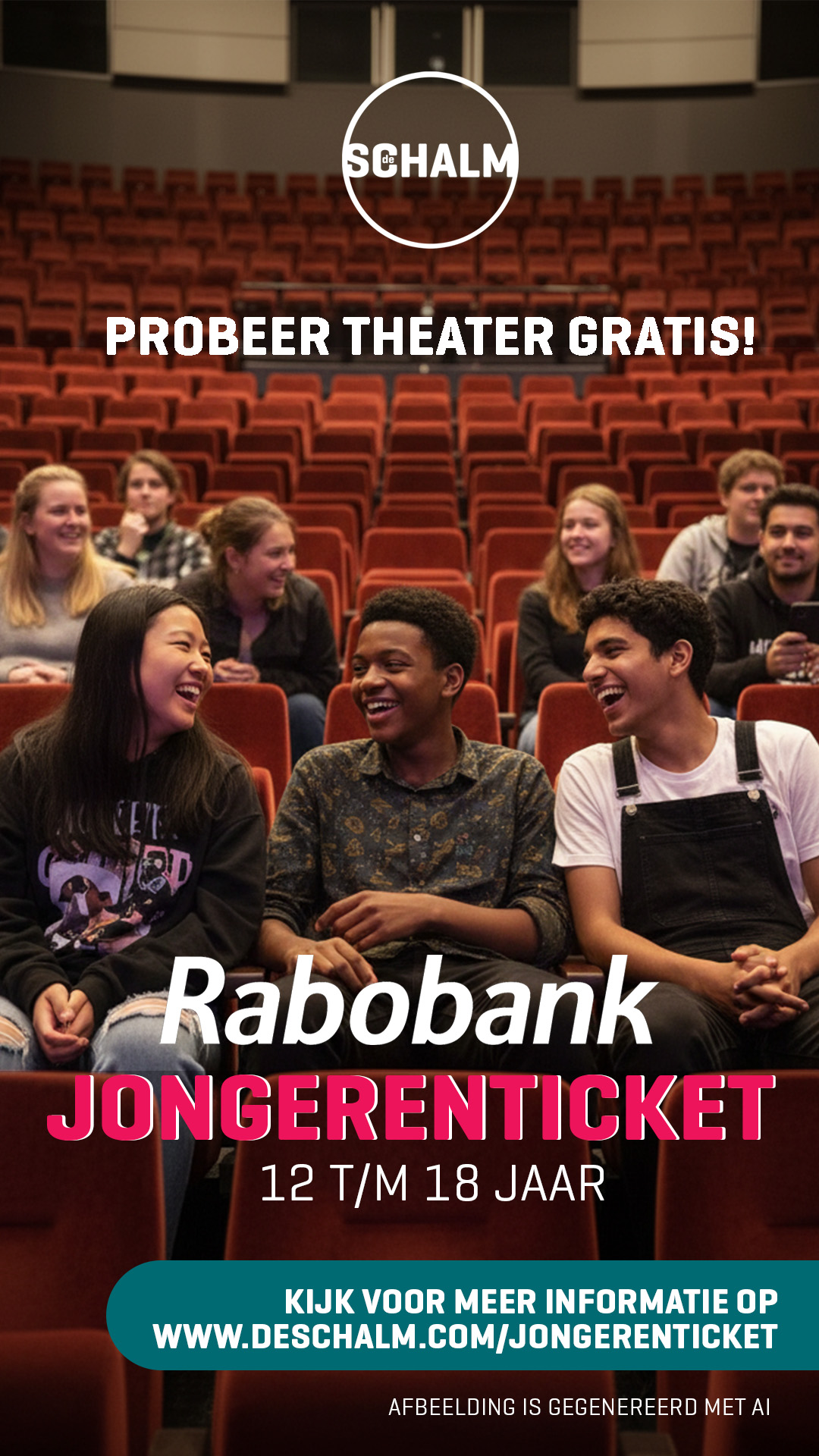 Door de samenwerking willen Theater de Schalm en Rabobank de cultuurparticipatie van jongeren bevorderen. De doelgroep tussen 12 en 18 jaar weet over het algemeen de weg naar het theater slecht te vinden. Tickets zijn prijzig, er is veel ander (cultureel) aanbod en jongeren zijn niet altijd op de hoogte van wat er speelt in een theater. Door deze doelgroep actief en duidelijk te benaderen, in combinatie met gratis voorstellingsbezoek, hopen beide partijen dat meer jongeren de meerwaarde van theaterbezoek zullen ervaren.